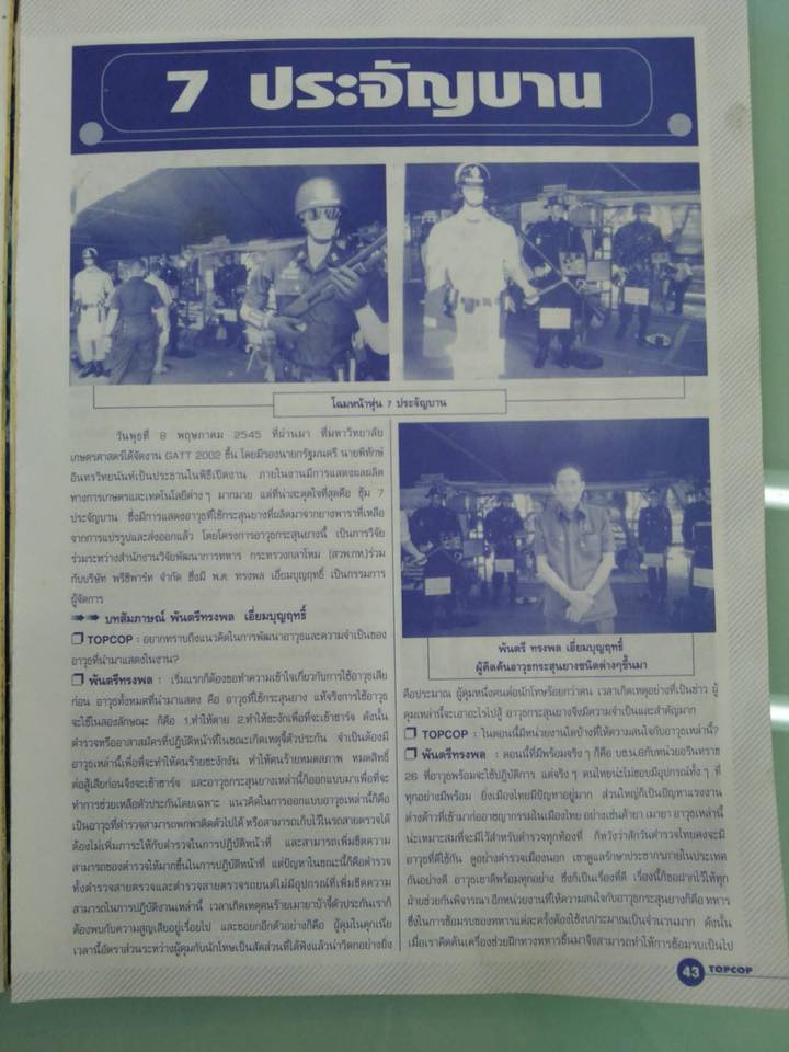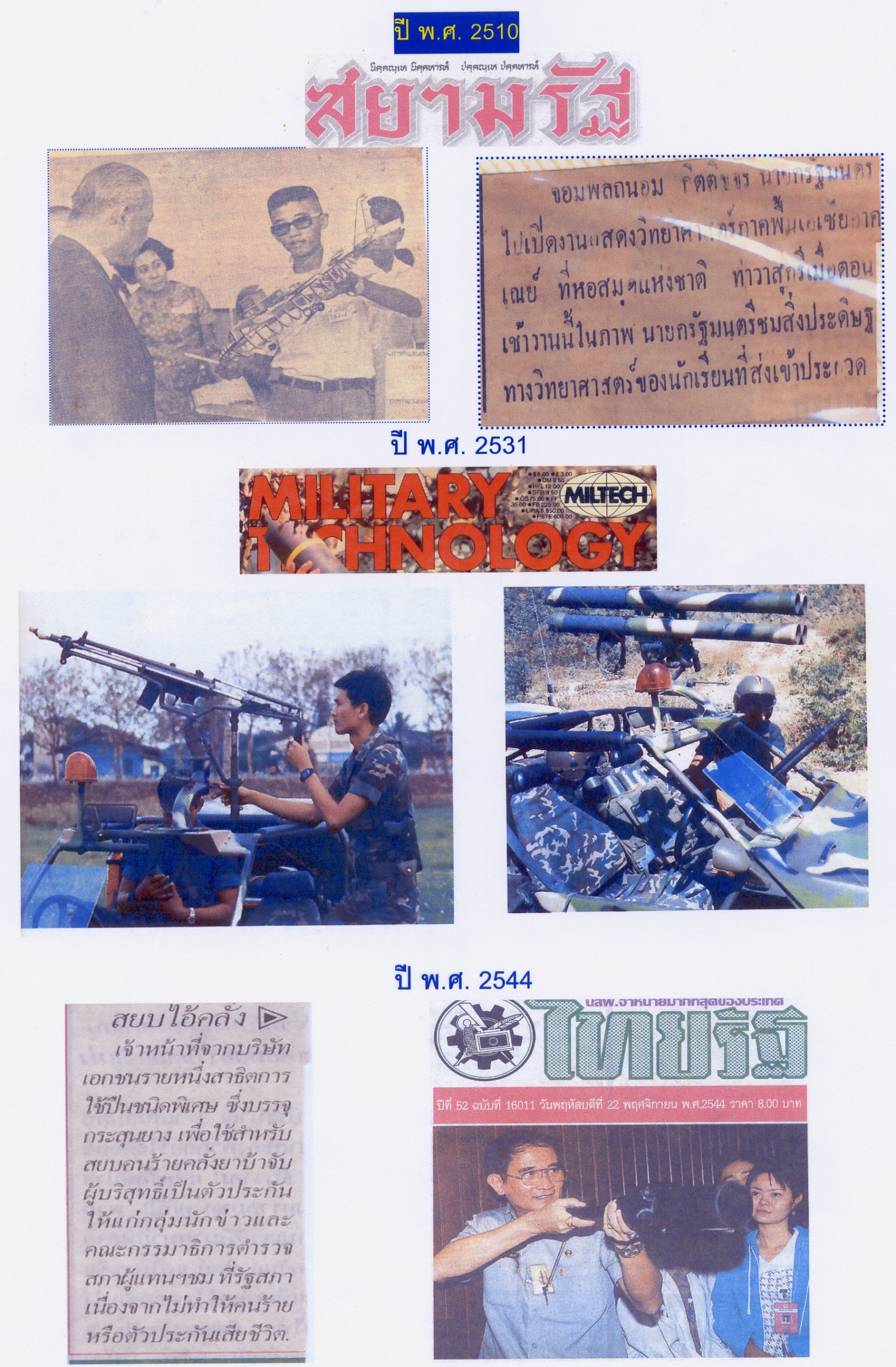 กระสุนยาง และเครื่องยิงกระสุนยาง ซึ่งมีส่วนสำคัญในการช่วยเจ้าหน้าที่ตำรวจปฏิบัติงานคลีคลายเหตุการณ์สำคัญ และล่อแหลม เช่น คนร้ายจับตัวประกัน เจ้าหน้าที่สามารถใช้กระสุนยางและเครื่องยิงกระสุนยางเข้าคลี่คลายโดยไม่มีการสูญเสียทั้งฝ่ายตัวประกันและคนร้าย ซึ่งทั้งกระสุนยางผลิตจากยางพาราและชุมชนท้องถิ่นผู้ปลูกยาง เครื่องยิงกระสุนยางเป็นการออกแบบและผลิตขึ้นโดยทีมงานบางระจัน