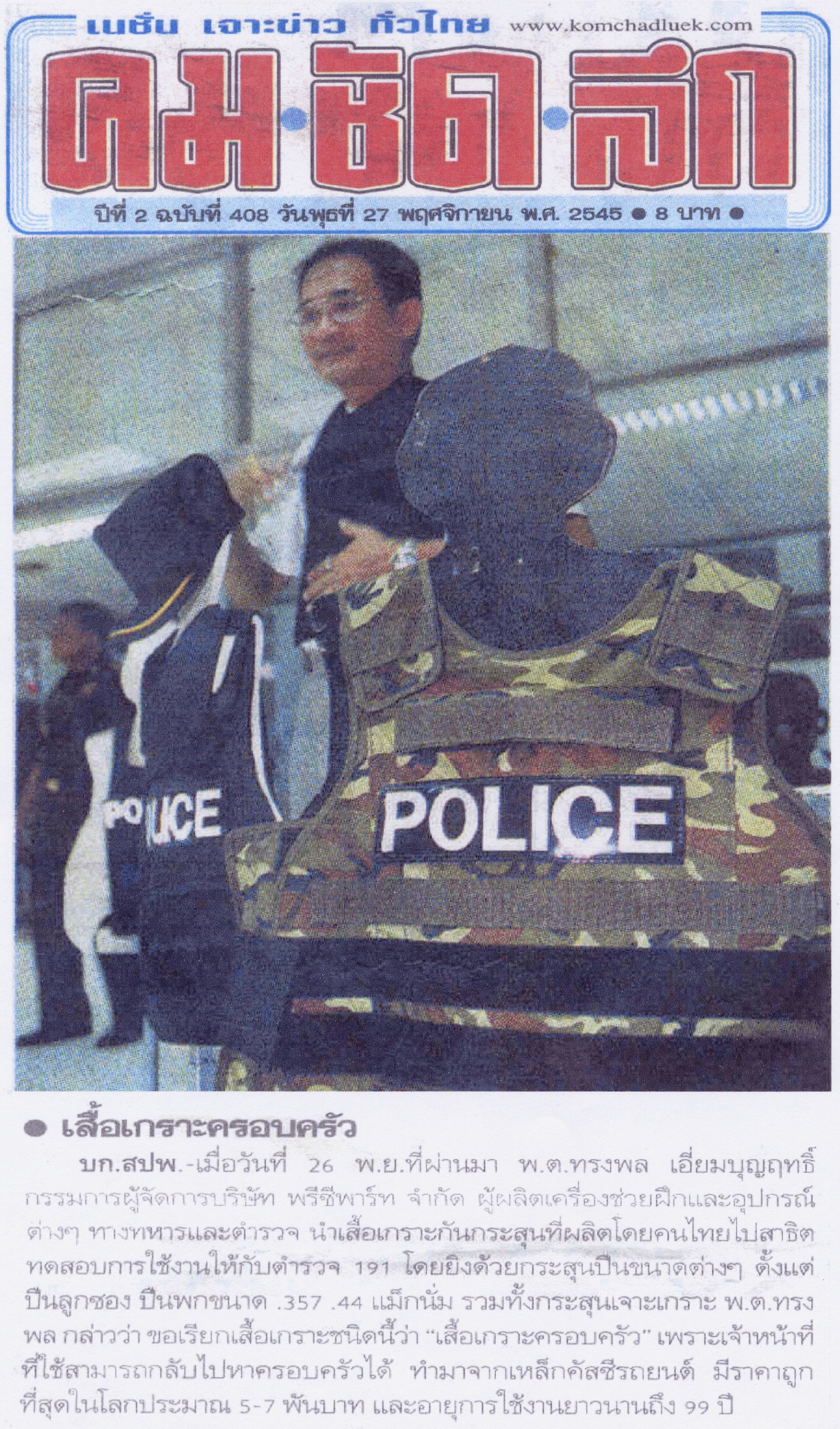 เสื้อกันกระสุนบางระจัน ซึ่งผลิตจากวัสดุในประเทศ ราคาถูก ทำให้สามารถแจกจ่ายให้แก่เจ้าหน้าที่ผู้ปฏิบัติงานในพื้นที่ที่มีความเสี่ยงภัยสูง เช่น พื้นที่ใน 3 จังหวัดชายแดนภาคใต้ ได้อย่างทั่วถึง ซึ่งเป็นการเพิ่มความมั่นใจให้แก่เจ้าหน้าที่ผู้บฏิบัติงานได้อย่างมาก